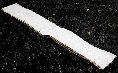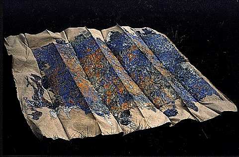 puzzle map streched and closed inside a linen bag, mixed technique (1986)